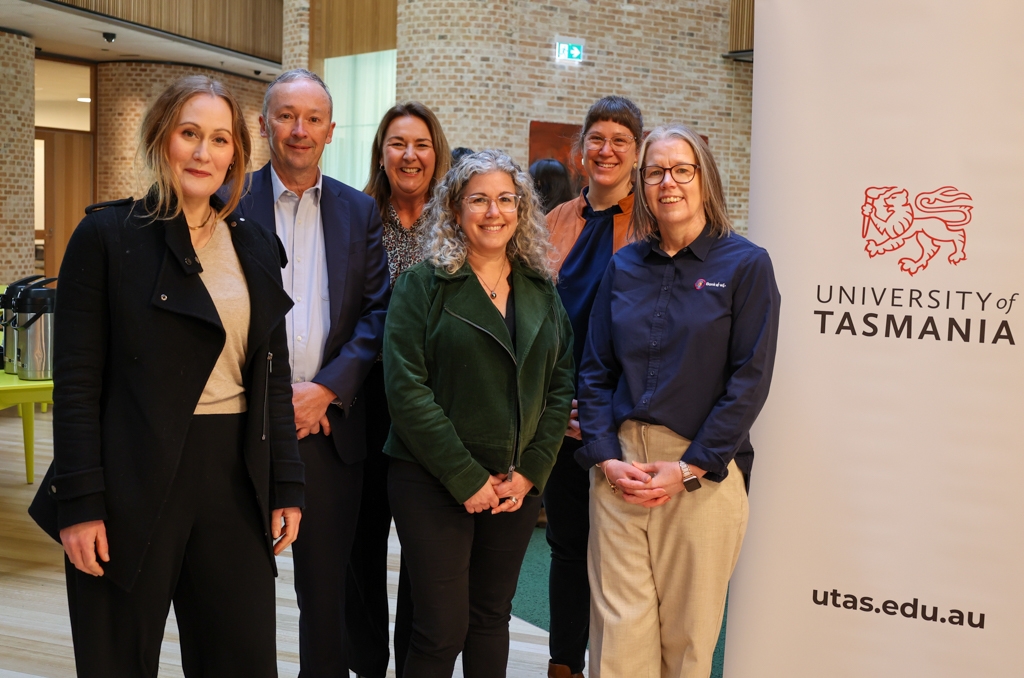 Kama Scott, Impact Specialist, Bank of us, Paul Ranson, CEO, Bank of us, Rebecca Cuthill, Director, Advancement, UTAS, Robin Barnes, Associate Head Research Performance, Tasmanian School of Business and Economics, UTAS, Nicole Gale, Project Officer, UTAS, Leith Perkins, Marketing & Communications Manager, Bank of us.