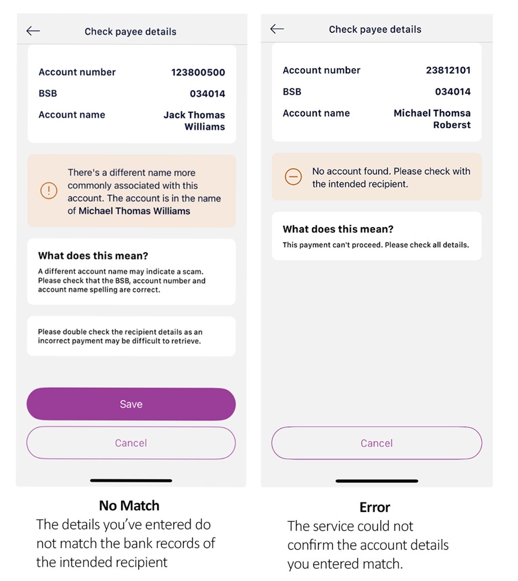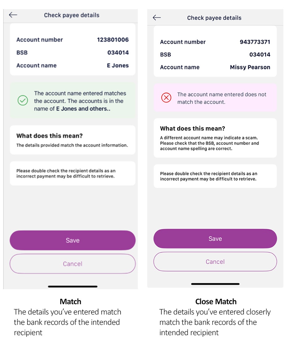 Confirm who you’re paying, before you pay - the service matches the bank account details entered by a payer with the account details held by the recipient’s bank and displays a match outcome to the payer. It can help reduce your risk of being scammed or sending your money to the wrong account.